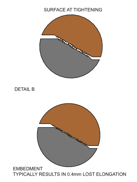 By way of an example, if 0.1mm embedment occurs on a 1:4 taper that will result in 0.4mm in lost elongation. That is a likely scenario when both sides of the slope are considered.