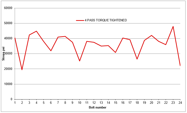 This is compliant and cost saving however the interaction between adjacent and opposite bolting is extremely high. Every time any bolt is tightened those alongside and opposite loosen.