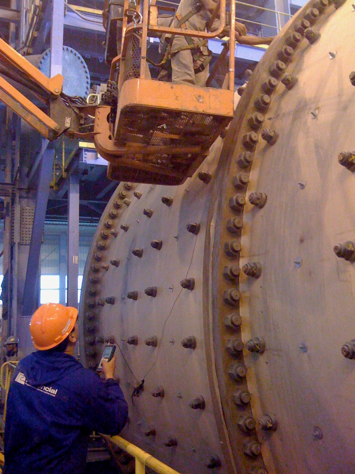 Grinding mills have critical fasteners that hold the structure together. If they have incorrect pre-load and loosen the ramifications are dire. Historically these bolts were torqued to 75% of the yield strength of the material. When you consider that the torque to tension relationship is normally regarded as + / - 25% it’s easy to see how they can easily be over or under tightened.